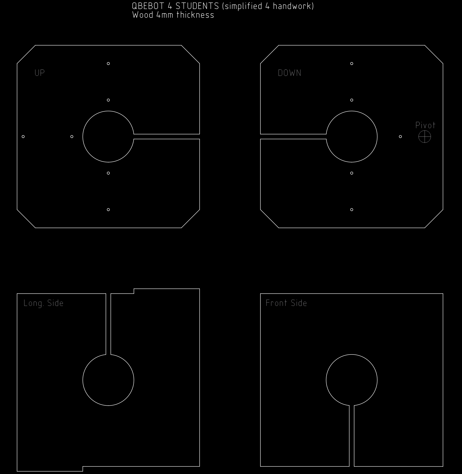 ShapesBelow you can see the simplified layout of QBEBOT, ready to be worked using only a saw and a drill. It's not necessary a particulary skill and can be built in a classroom.